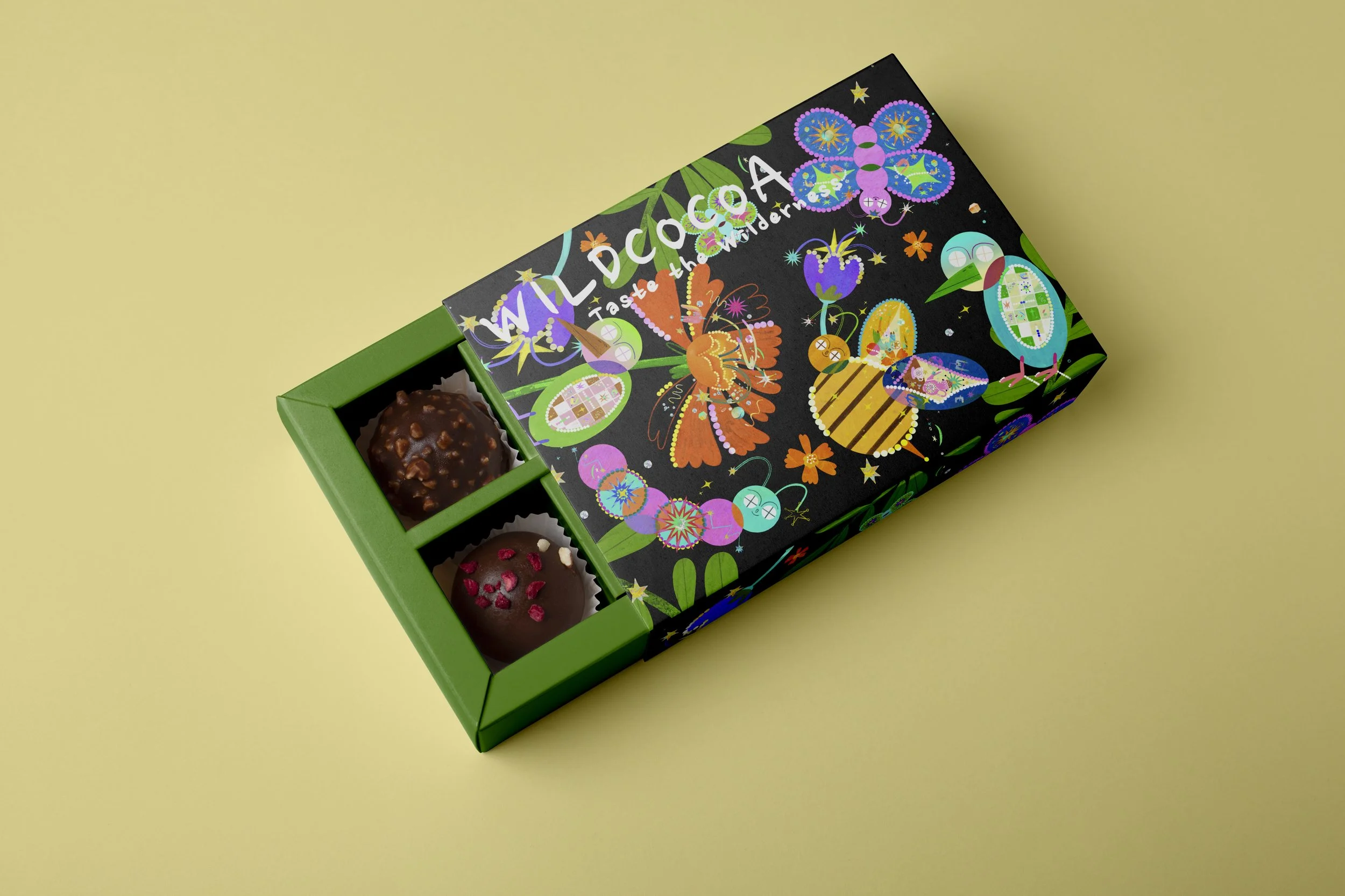 WildCocoa celebrates the magical transformation of nature—just like a caterpillar becoming a butterfly, our chocolates evolve from the finest cacao beans into an extraordinary sensory experience. Inspired by the rich biodiversity of forests, meadows, and pollinator gardens, each bar pays tribute to the life cycles of butterflies, the beauty of wildflowers, and the mystery of lush woodlands. Sustainably crafted with ethically sourced ingredients, WildCocoa invites you to savor the journey of nature in every bite.
